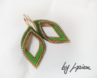 Cercei - 6 cm lungime - rulla, toho, drops de jad